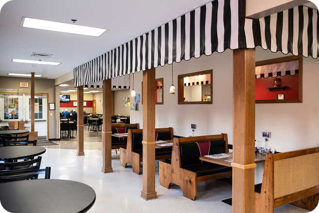 We offer our residents a beautiful and spacious 52-acre campus, home to services for those with developmental and intellectual disabilities, such as housing and day habilitation (vocational and recreational). Amenities for the community include our daycare and The Villa Restaurant.